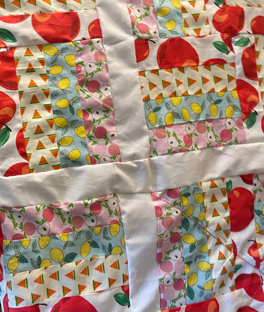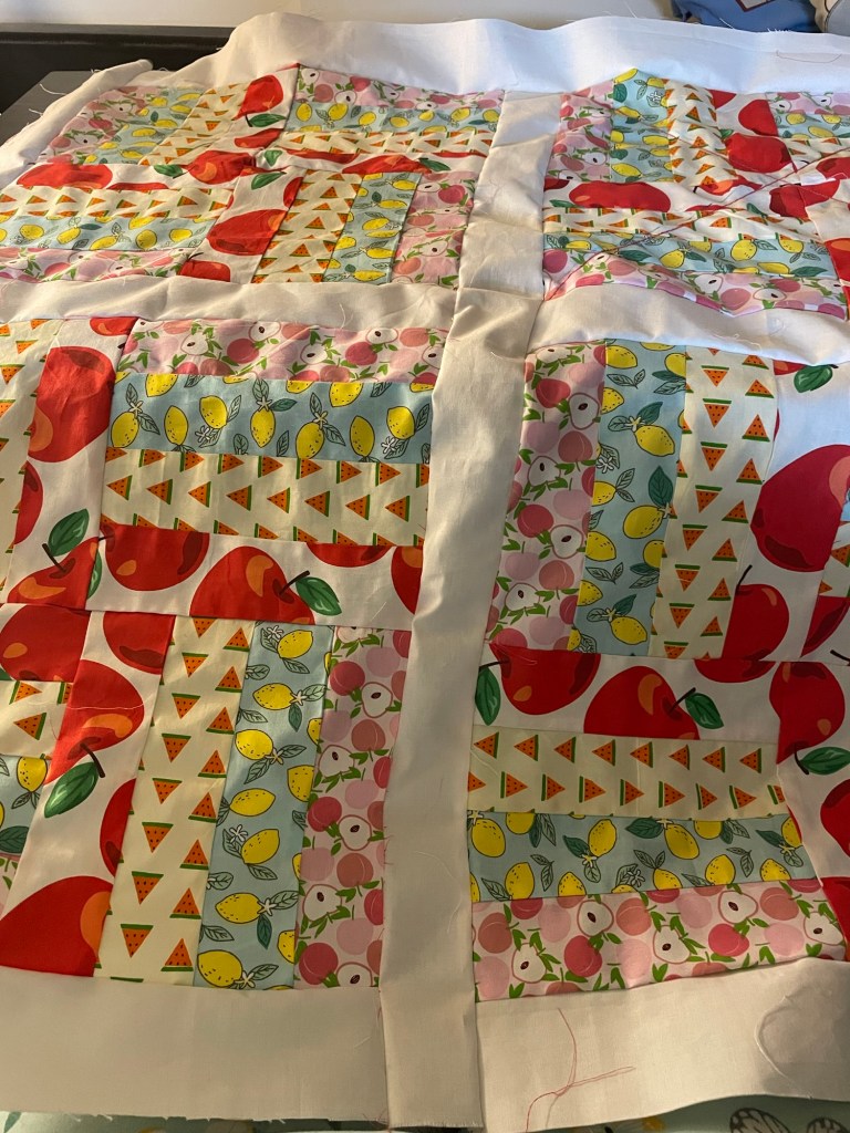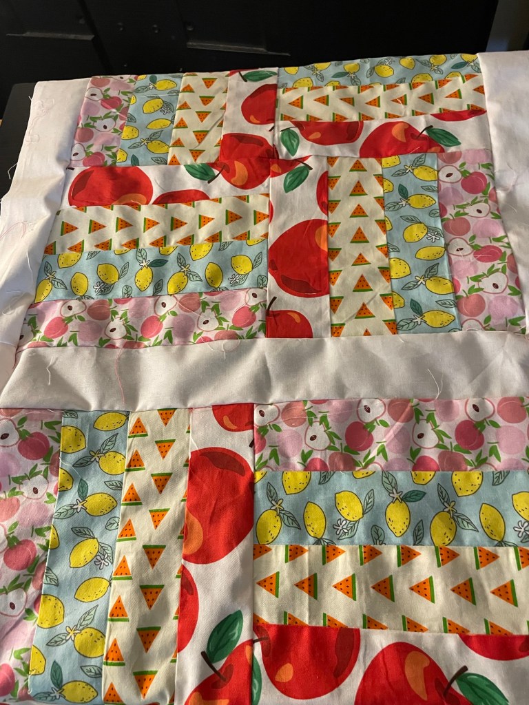 I just finished a quilt top for my teacher/friend’s daughter. It’s giving tablecloth but I love it. I’m going to back it with some pink minky fabric.