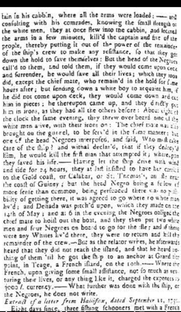 The rebels initially wanted to return to Calabar (present-day Nigeria), but that plan was abandoned. Instead, it was decided they would sail for a place “where no white man liv’d,” according to an account published in the November 14, 1750 issue of the Maryland Gazette.