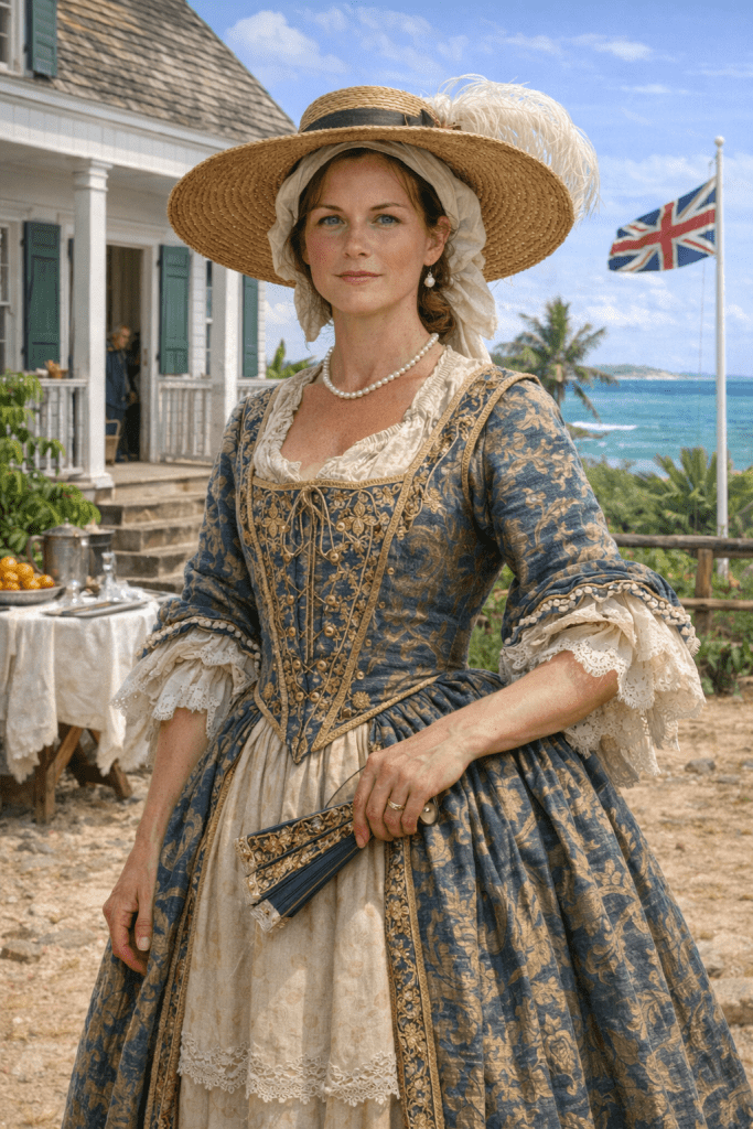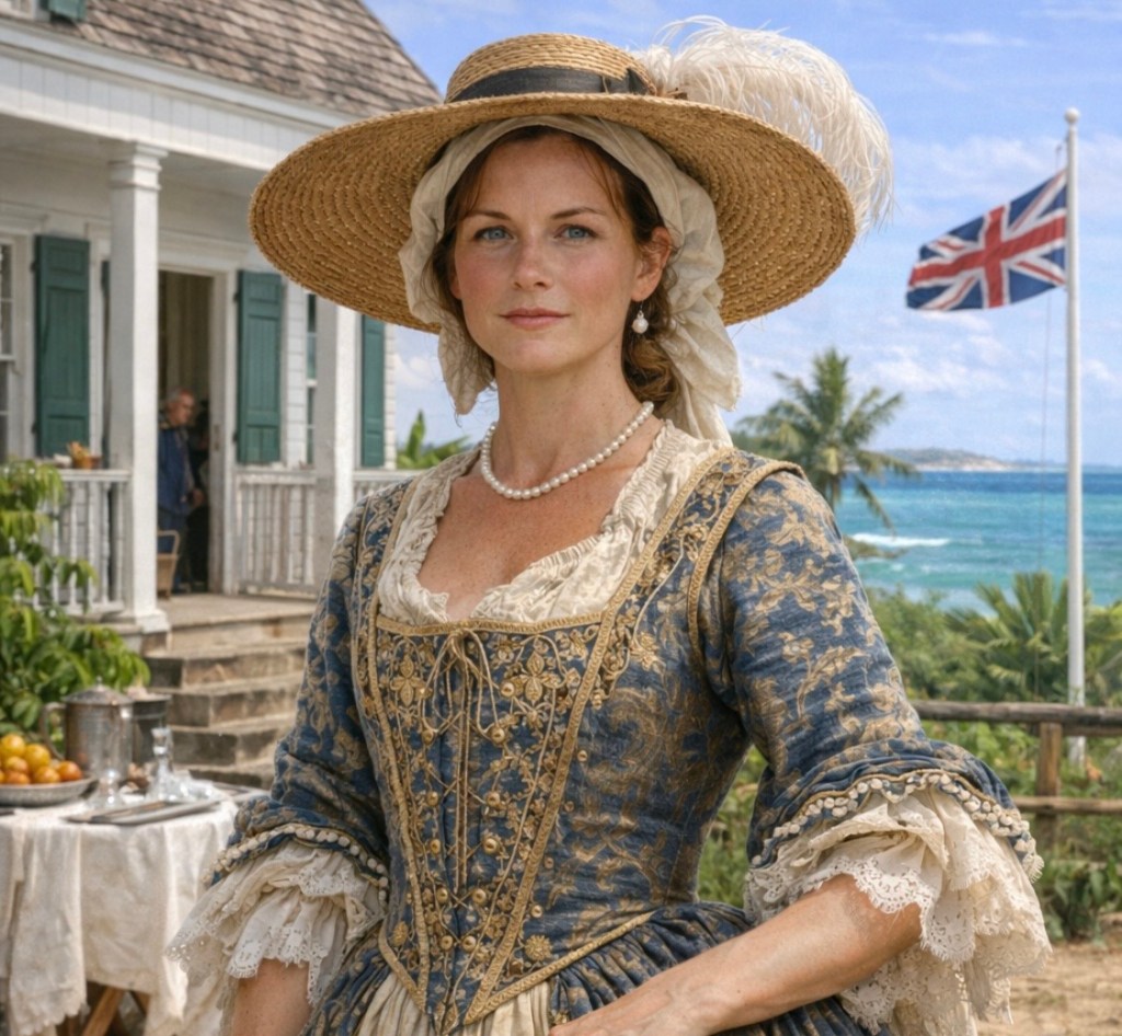 Ai generated Lady Sarah Hodge in 1680 Anguilla; my 7th great grandmother